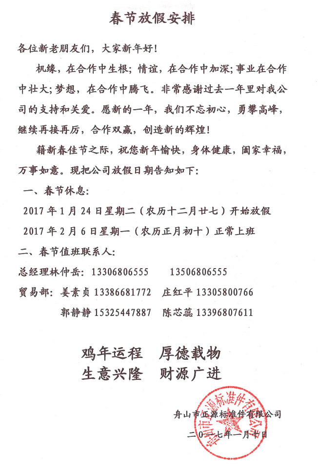 春節(jié)放假安排